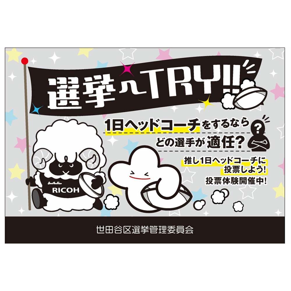 津村大志選手、中楠一期選手、西川大輔選手、ラムまるが1日ヘッドコーチに立候補し、模擬投票をおこないます!